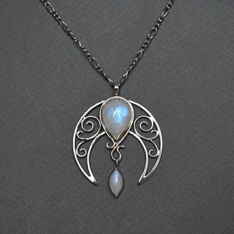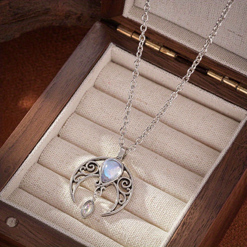 1PC Bohemian Moonstone Necklace, Vintage Spiral Hollow Moon Chain