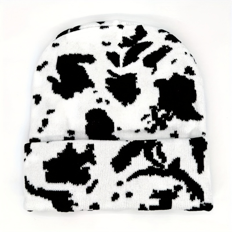1pc Winter Cow Print Beanie , Thicken Warm Skullies