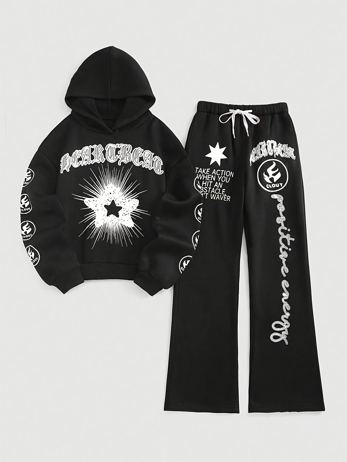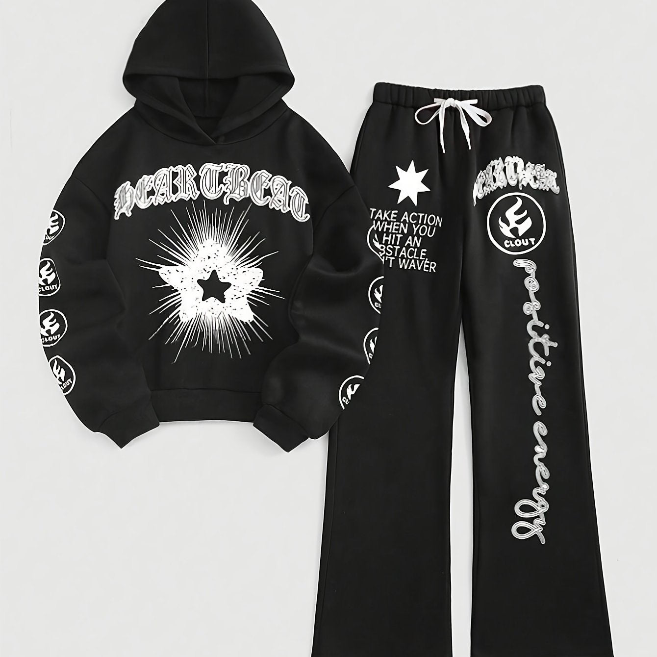 Cozy Star Two-Piece Pantsuit - Women's Long Sleeve HoodSweatie & Drawstring Wide Leg pants with Soft Fabric