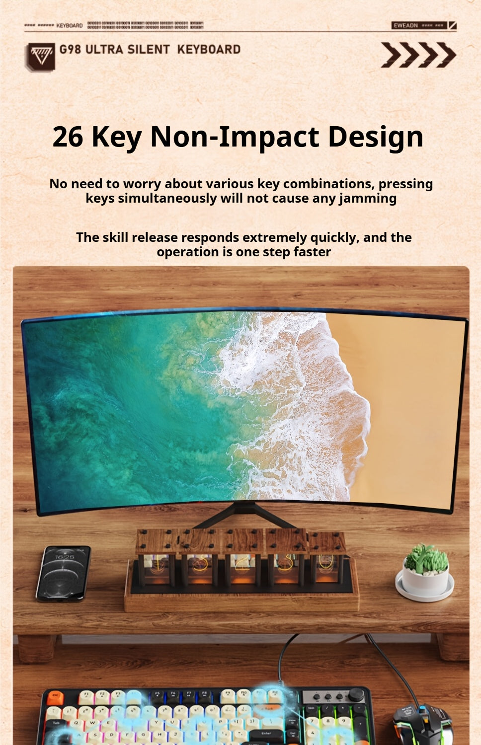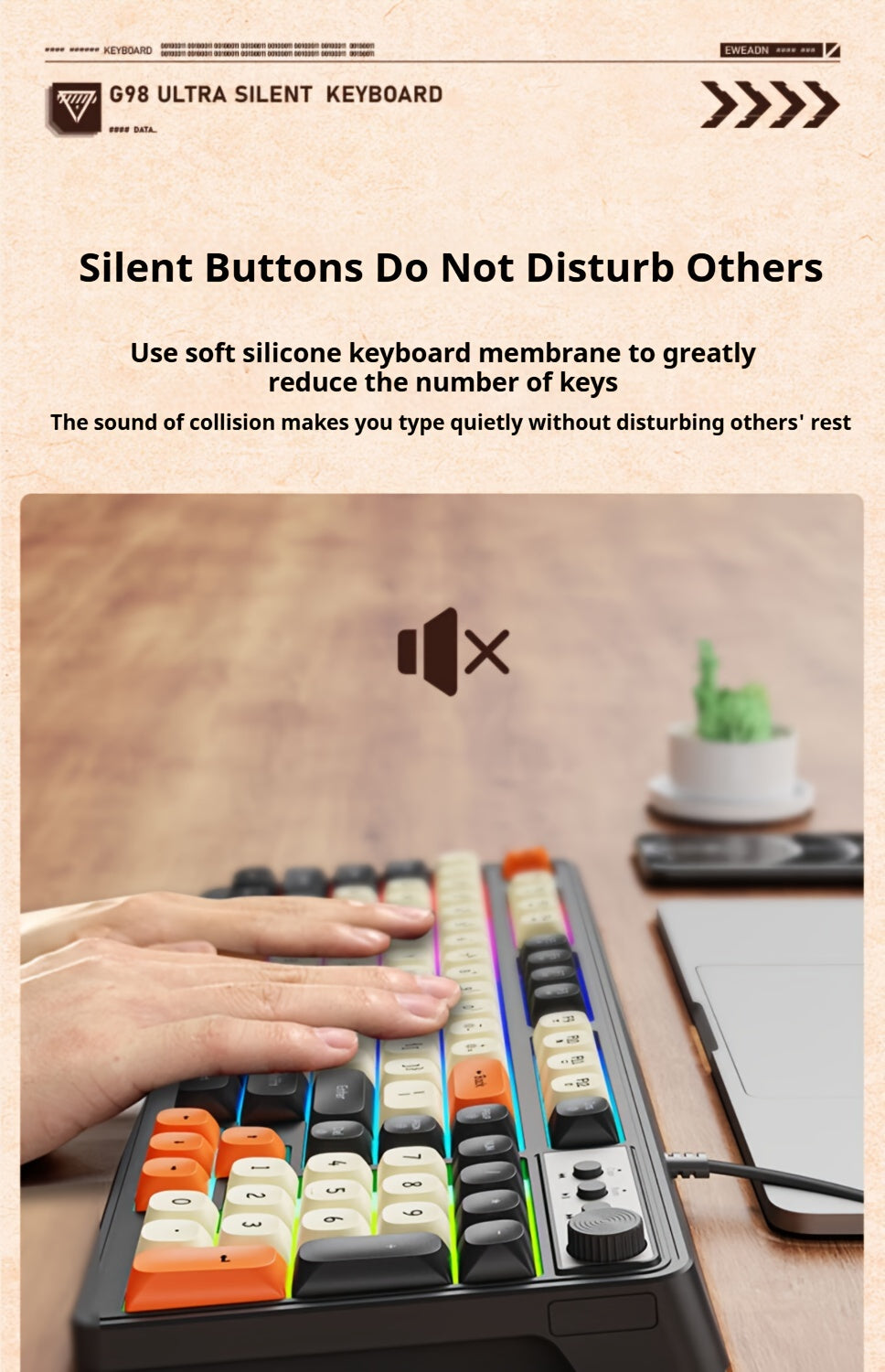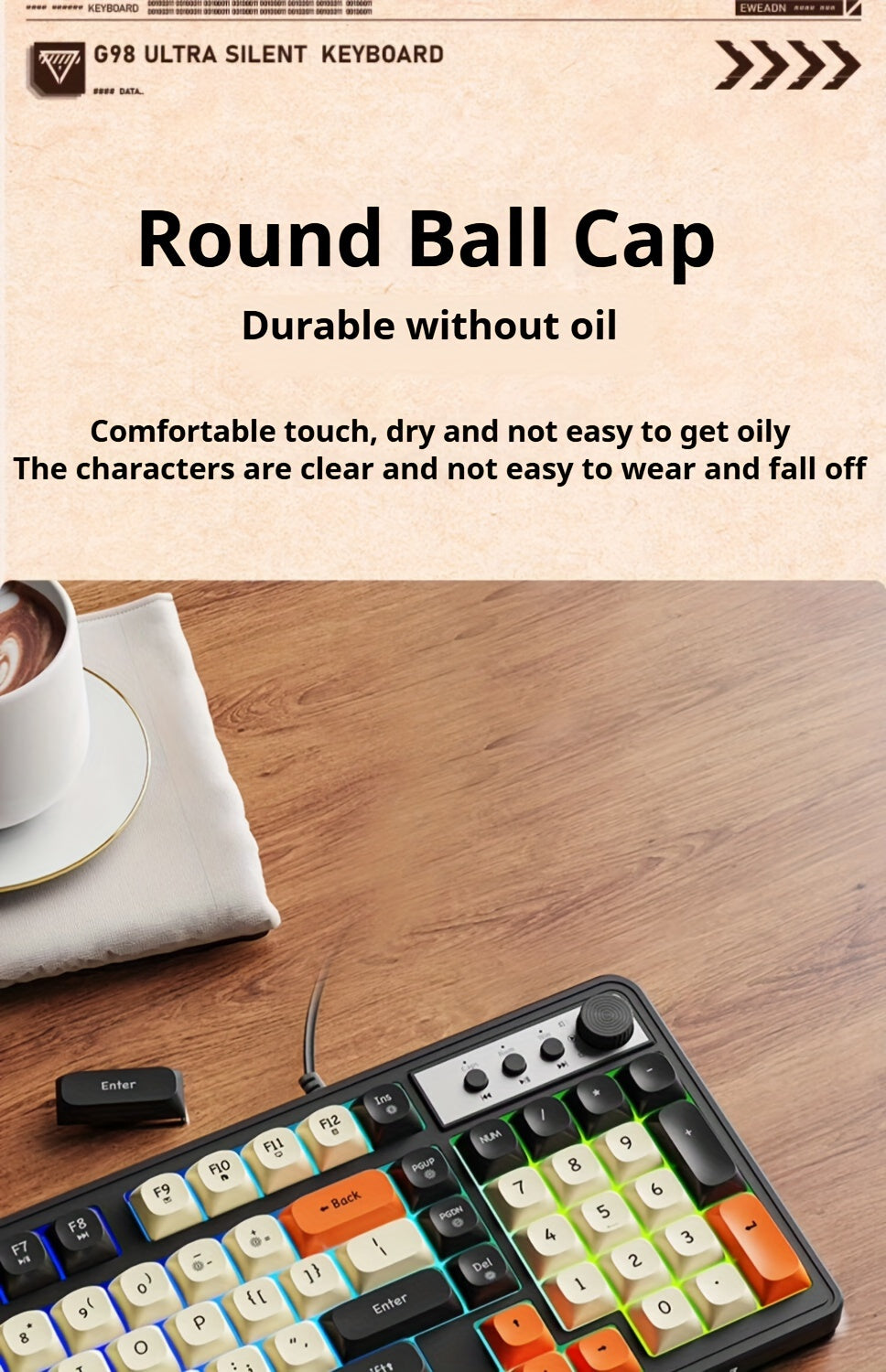 Wired Gaming Keyboard with Rainbow Backlit, Portable Black Keyboard for-98 Keys