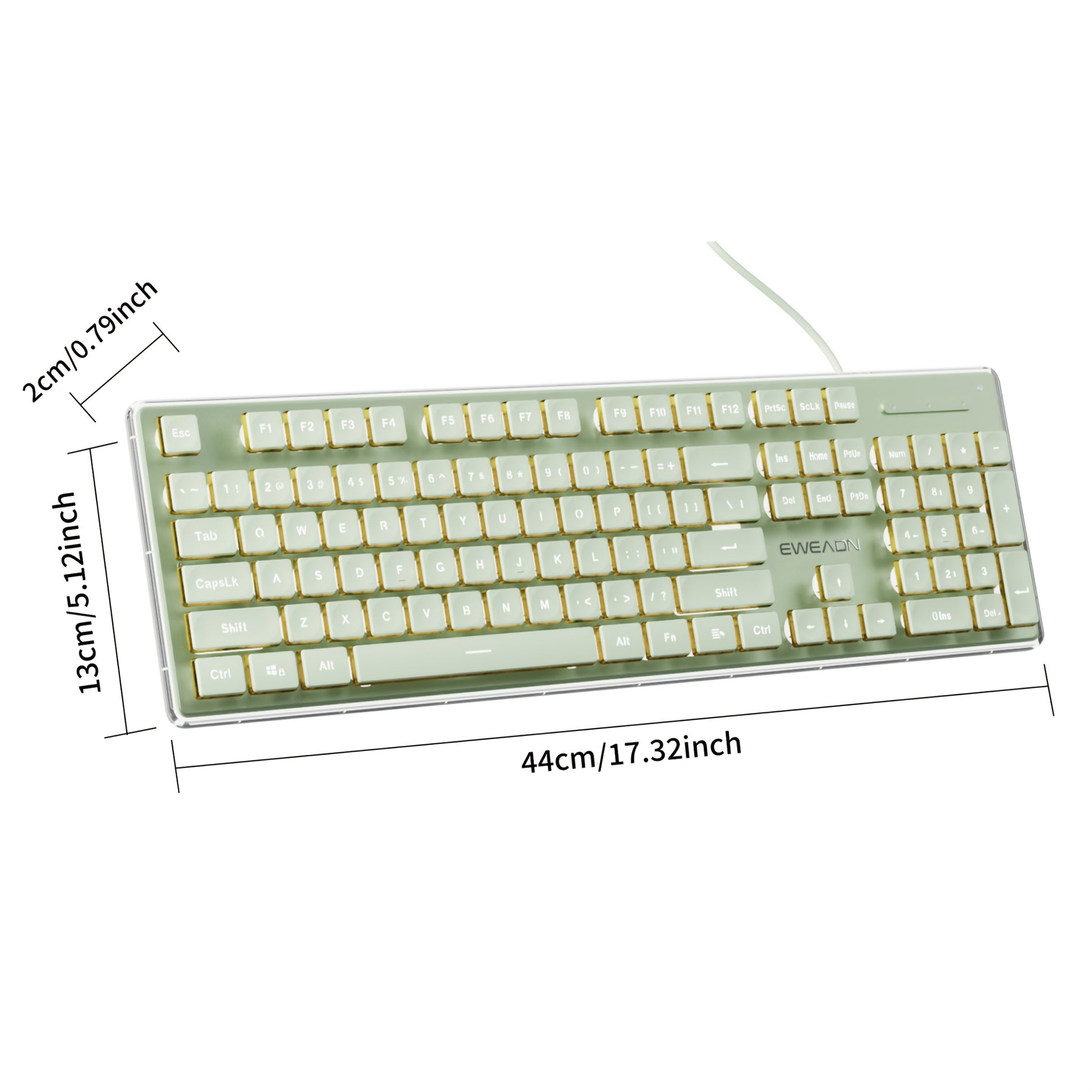 Wired Keyboard | Full Size 104 Quiet Keys, Comfortable Typing with Pudding-Style Keycaps, Durable All-Metal Panel, Soft LED Backlight