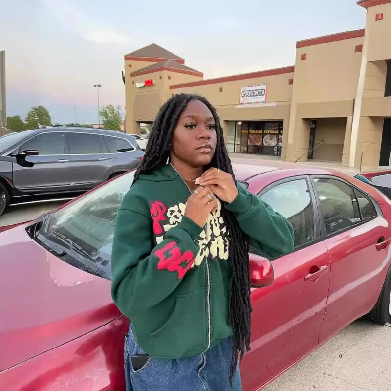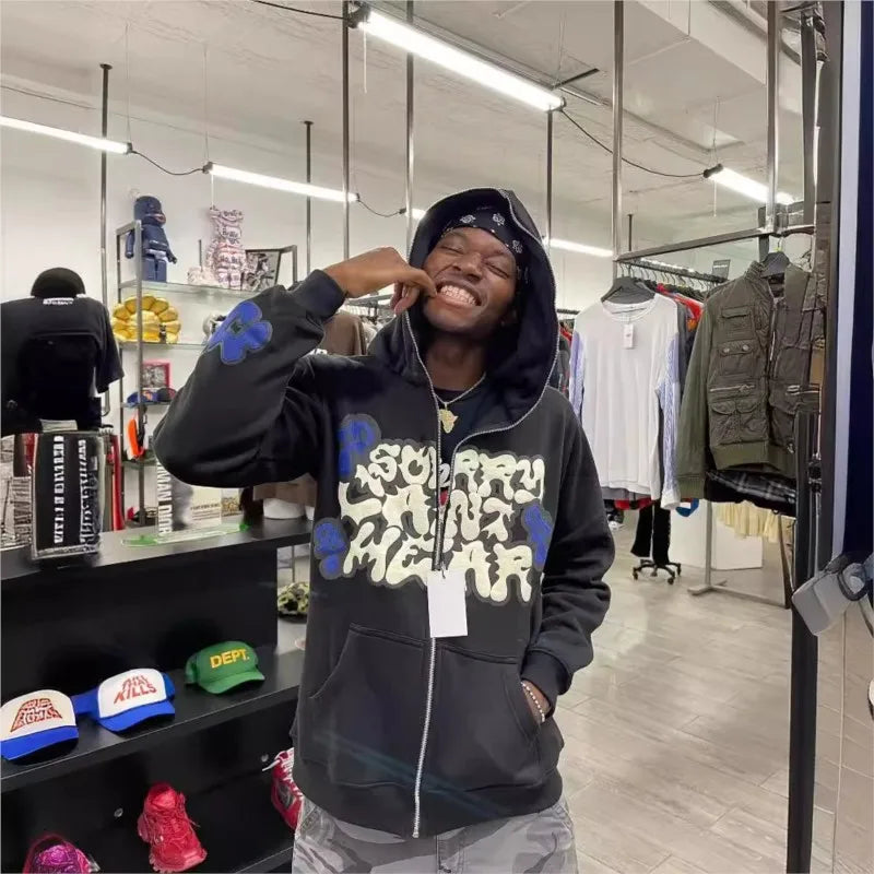 Harajuku Jacket Letter Print Coat Men Women Jackets Pink Zip Hooded Sweatshirt Fashion Long-sleeved Zipper Tops Casual Hoodies