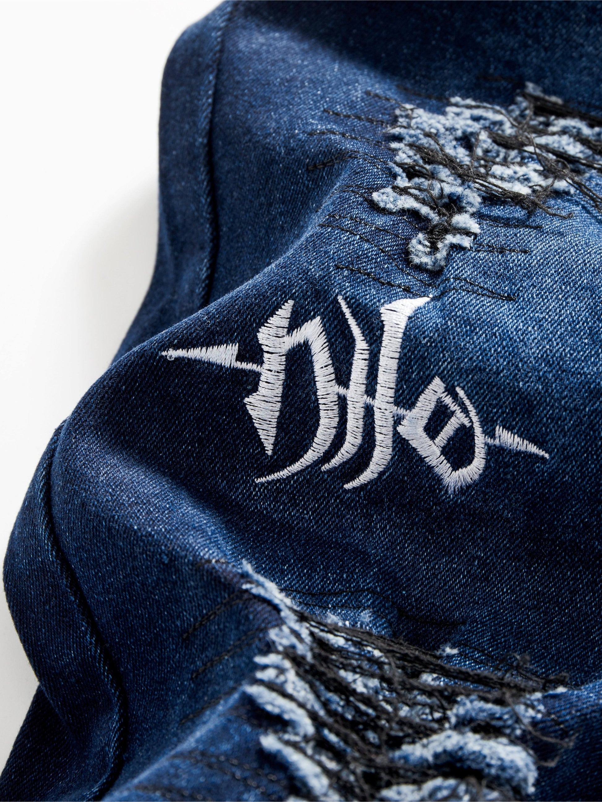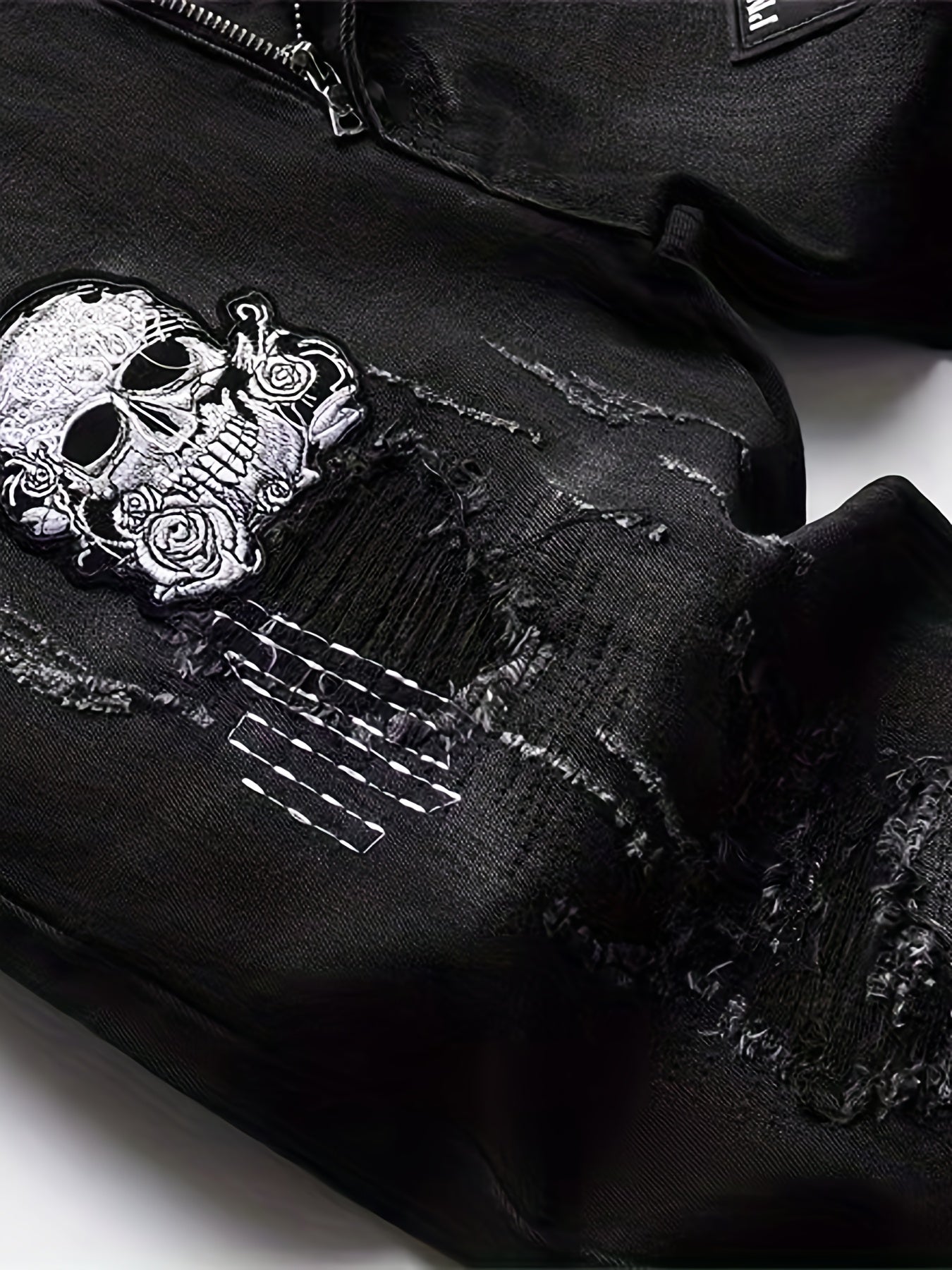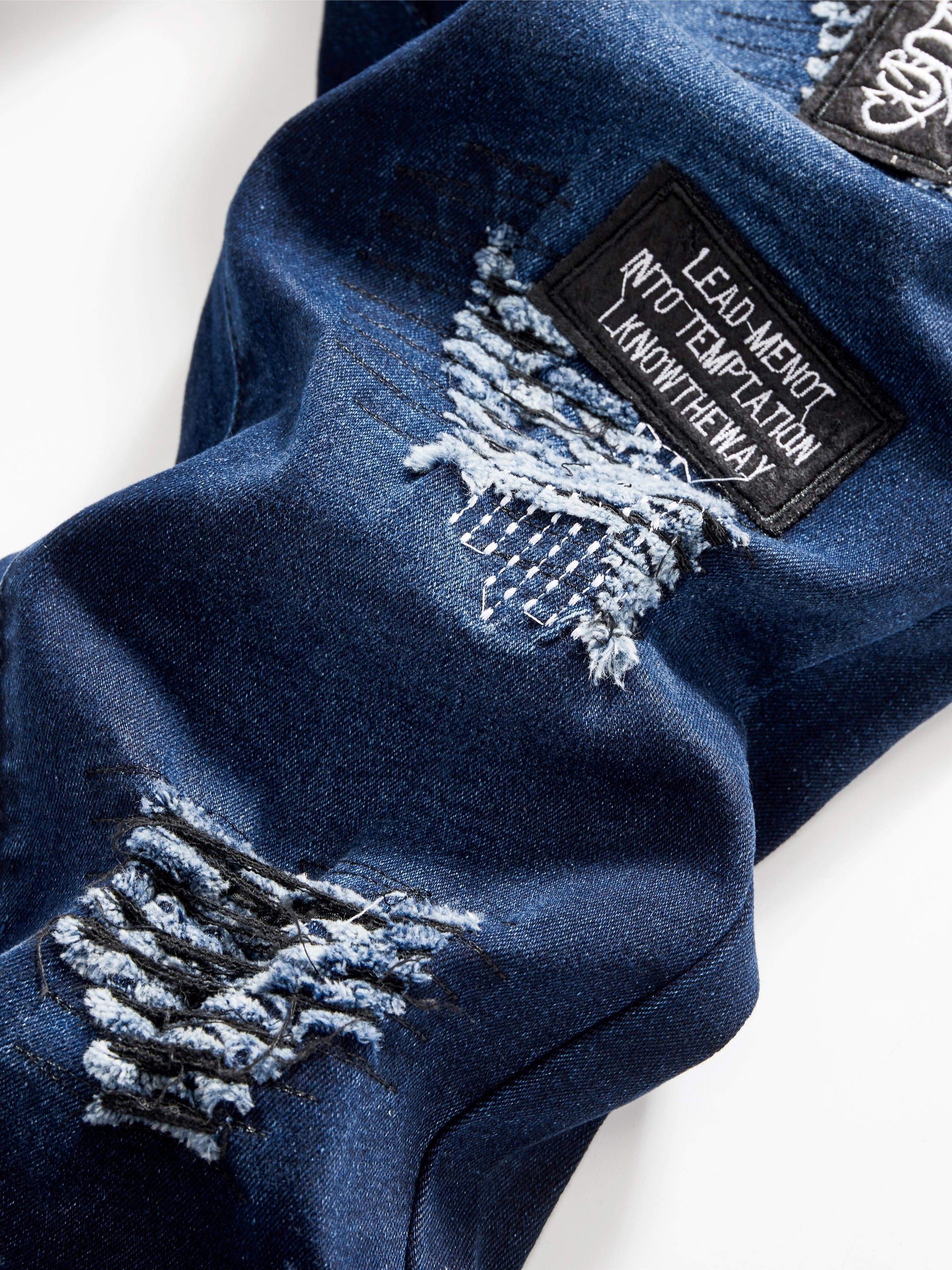 Medium Stretch Men's Patchwork Jeans, Casual Street Style Denim Pants