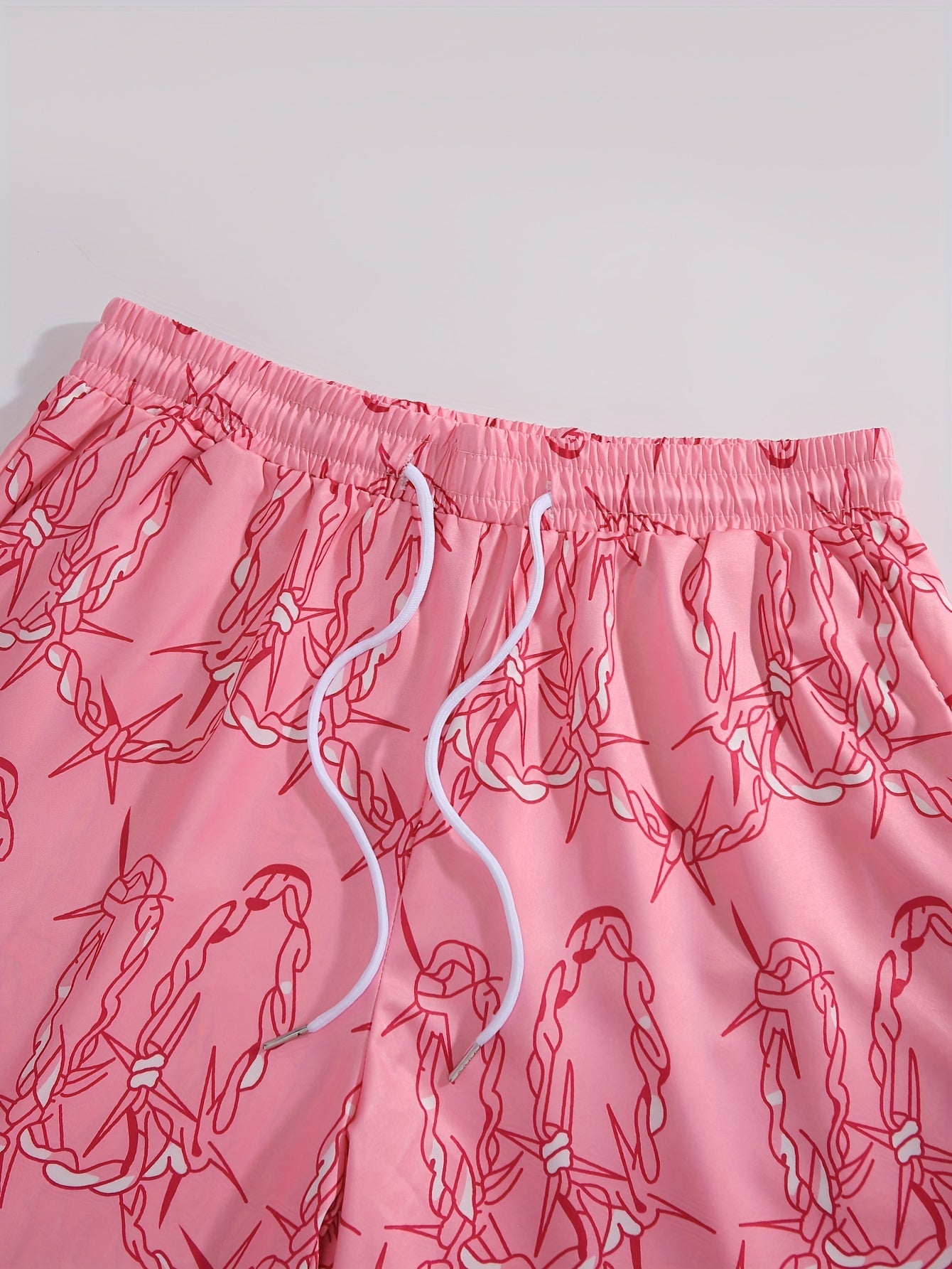 Men's T-Shirt & Shorts Set, Comfortable Crew Neck Tee With Stylish Print, Breathable Graphic Shorts With Drawstring