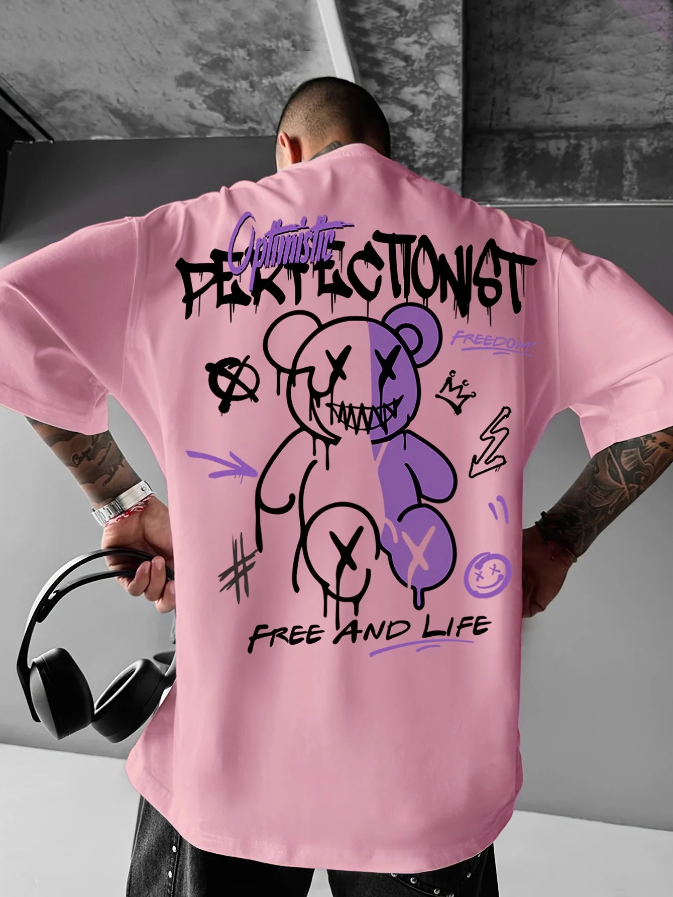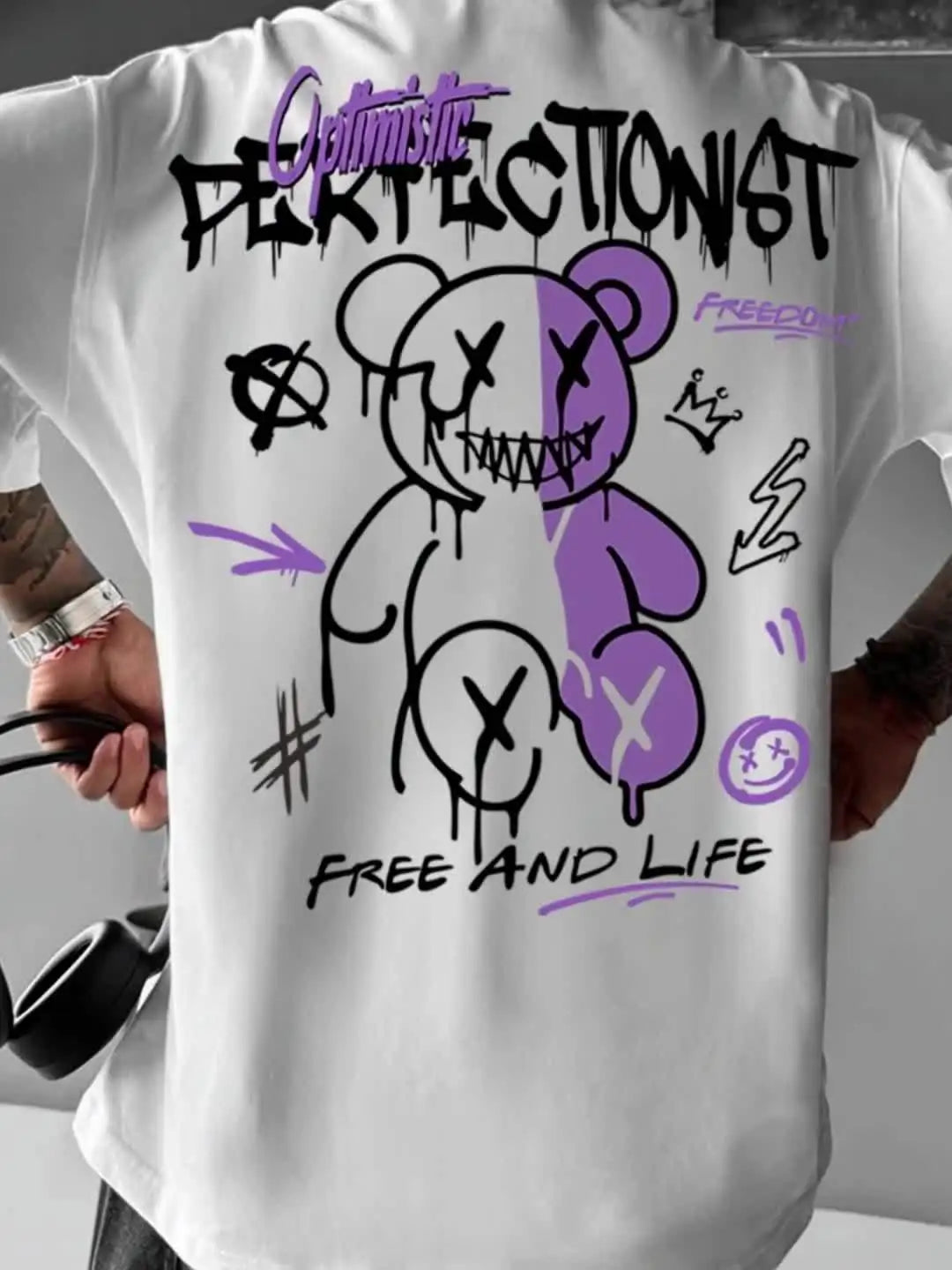 Men's summer 100 cotton fashionable casual sports loose American street letter printed round neck short sleeved T-shirt top