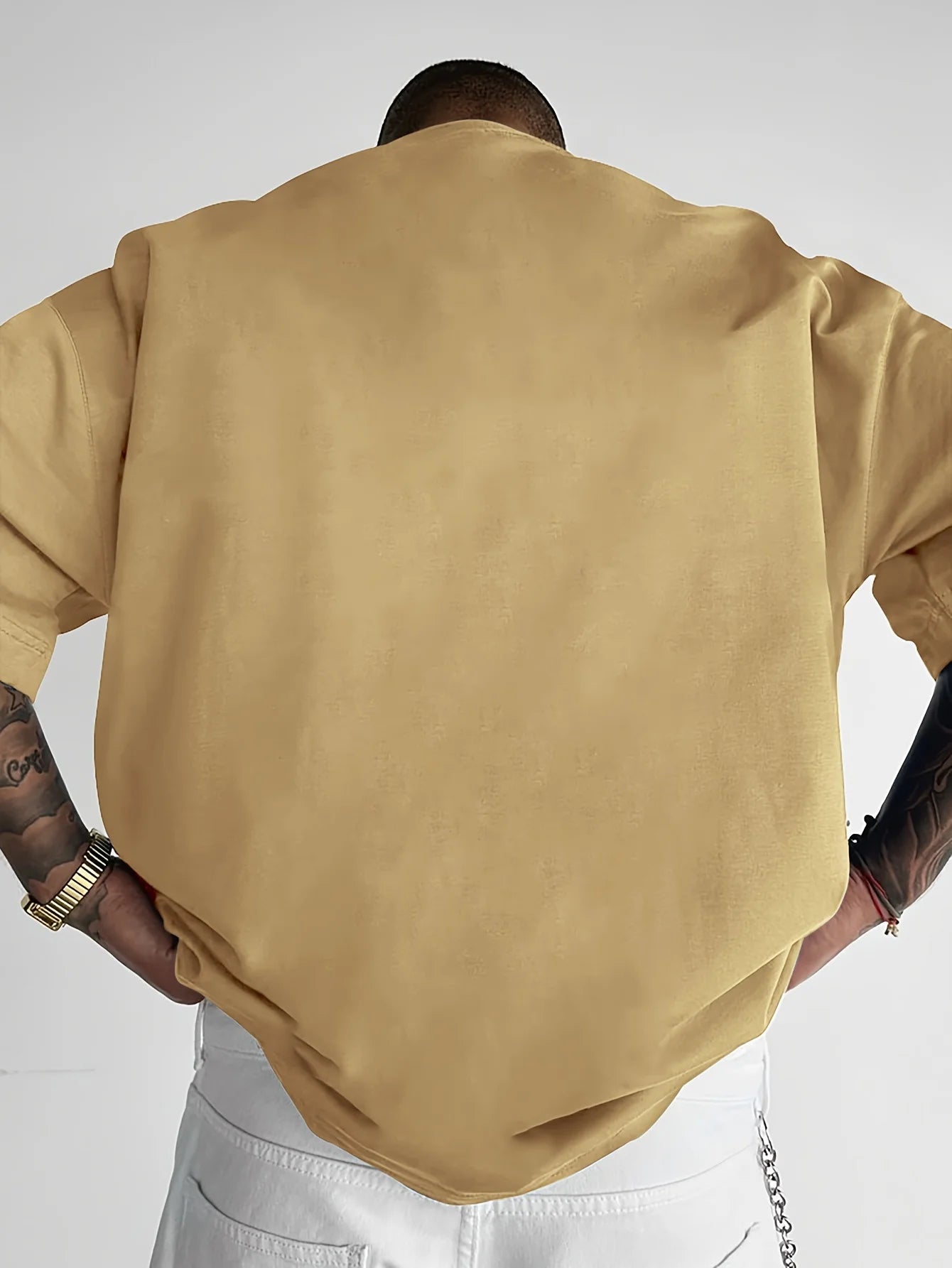 Men's cotton fashionable casual loose printed round neck short sleeved T-shirt top