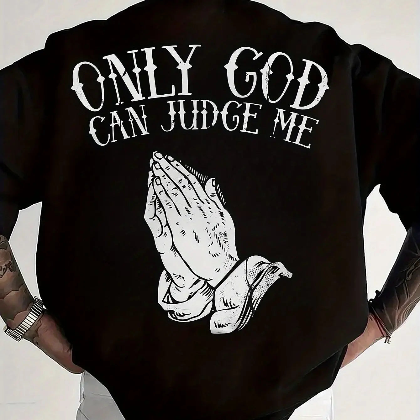 Men's cotton fashionable casual loose only GOD CAN JUDGE ME printed round neck short sleeved T-shirt top