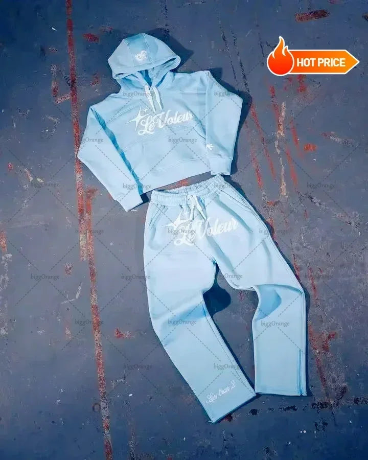 Neutral Street Hoodies and Jogging Sets, High Street Soft Sweatshirts and Pants Shorts Stylish Powder Blue and Brown Casual Wear
