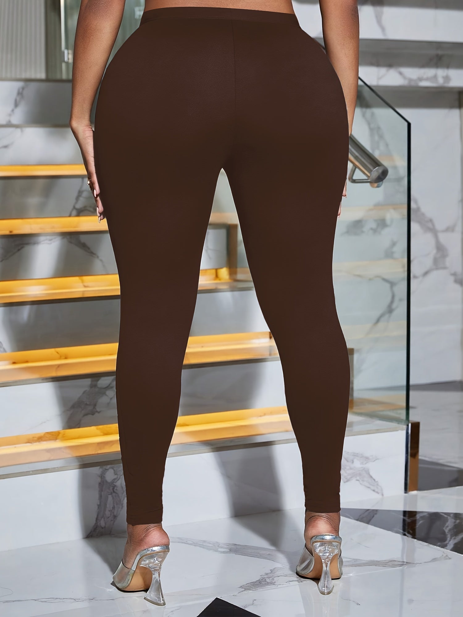 Plus Size Solid Color High Waist Leggings, High Stretch Skinny Ripped Leggings