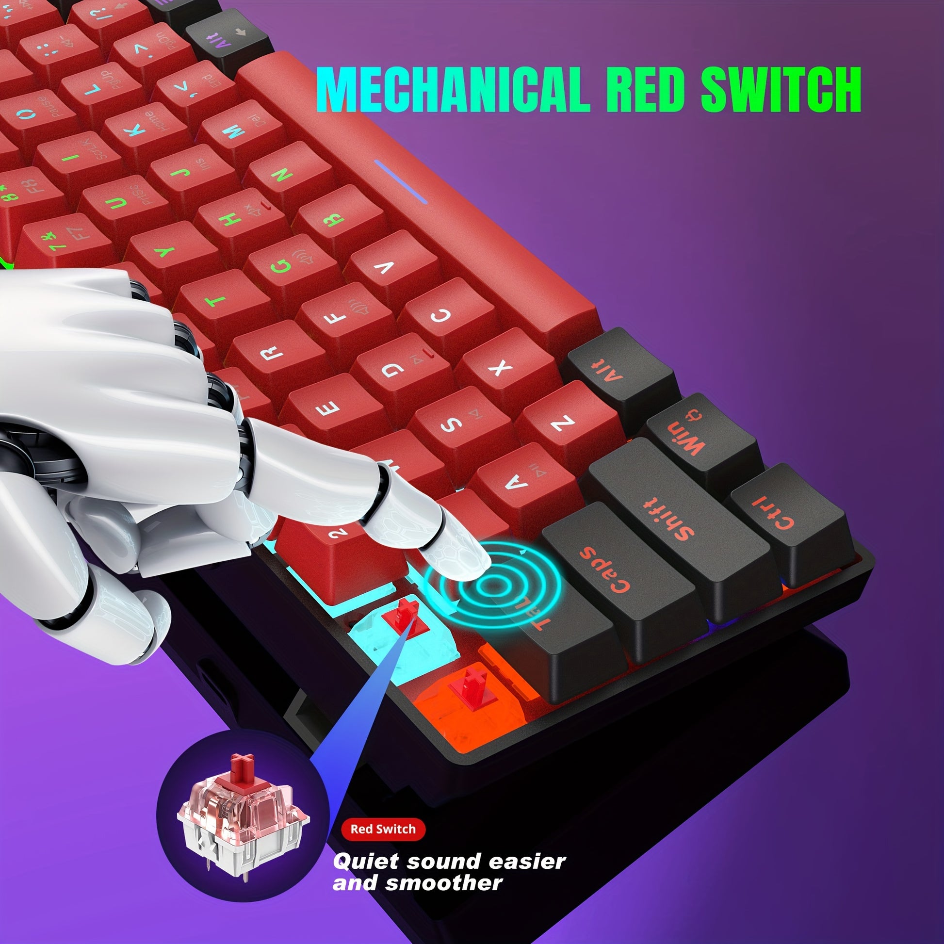 Wired Mechanical Keyboard, Mini Gaming Keyboard with 61 Red Switches Keys