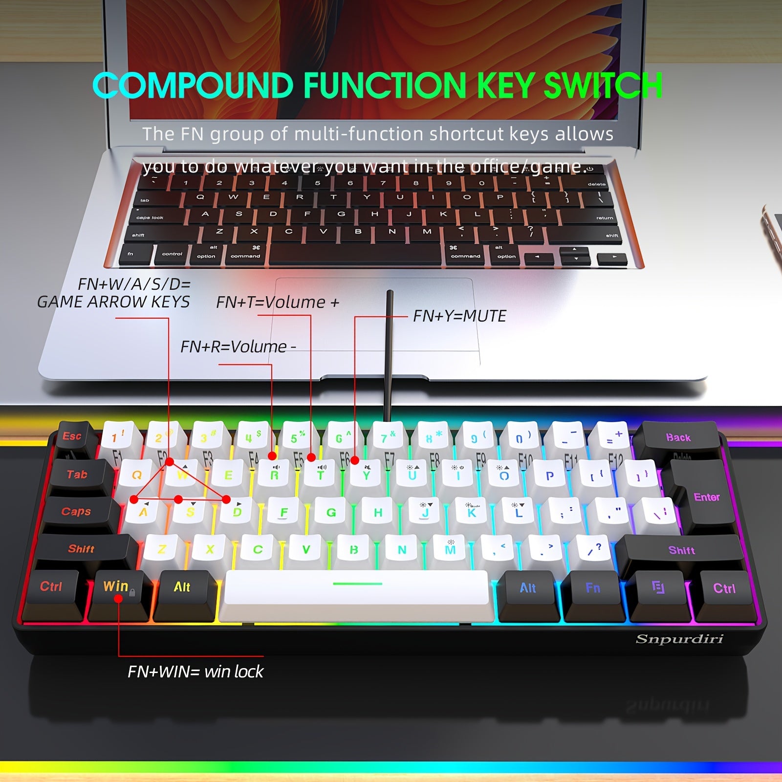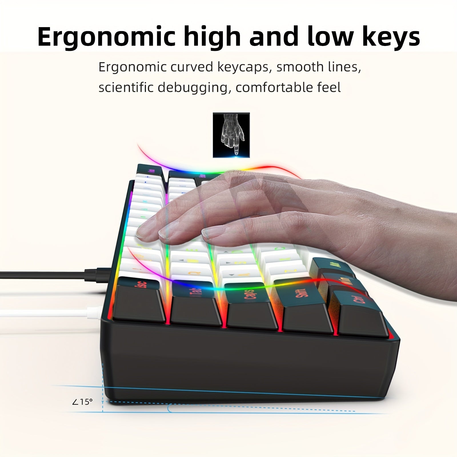 Wired Gaming Keyboard - Mini 61-Key, RGB Backlight, Suitable for PC/Mac