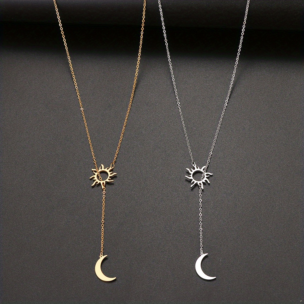 Stainless Steel Sun Totem & Moon Necklace For Women