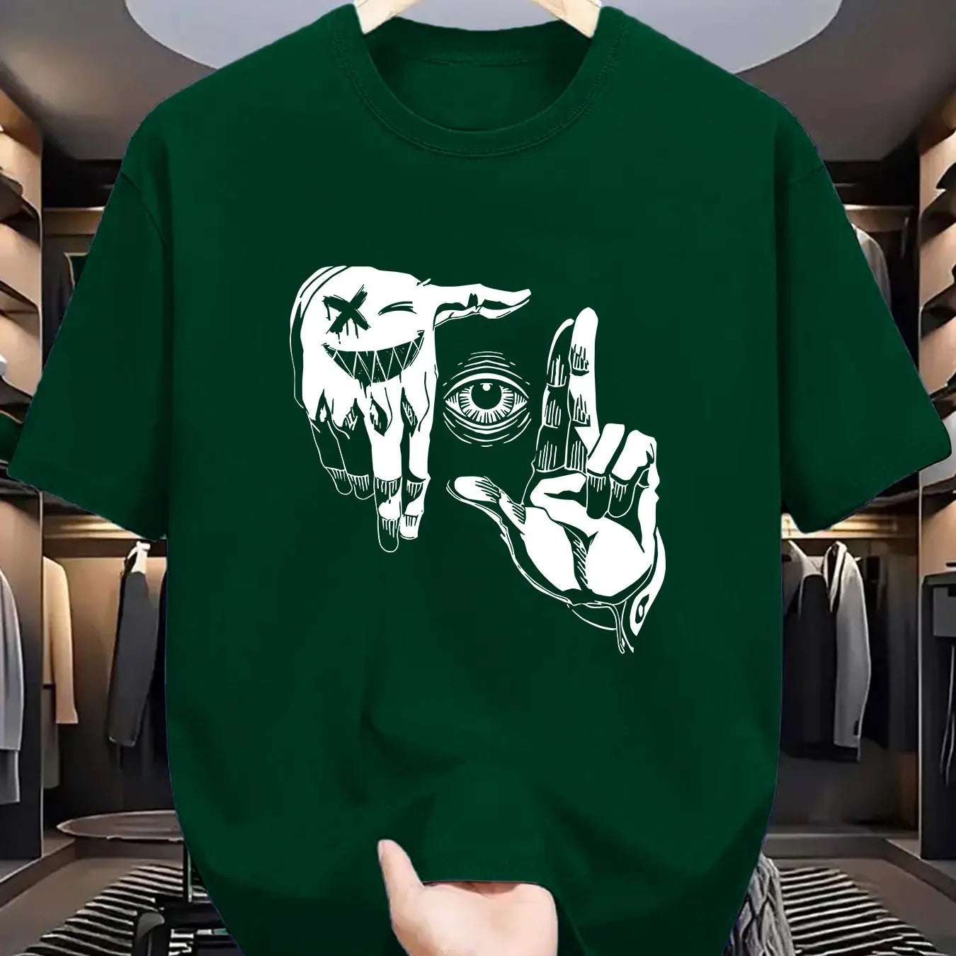 r men's 100% pure cotton casual loose plus size gesture eye personalized pattern printed round neck short sleeved T-shirt