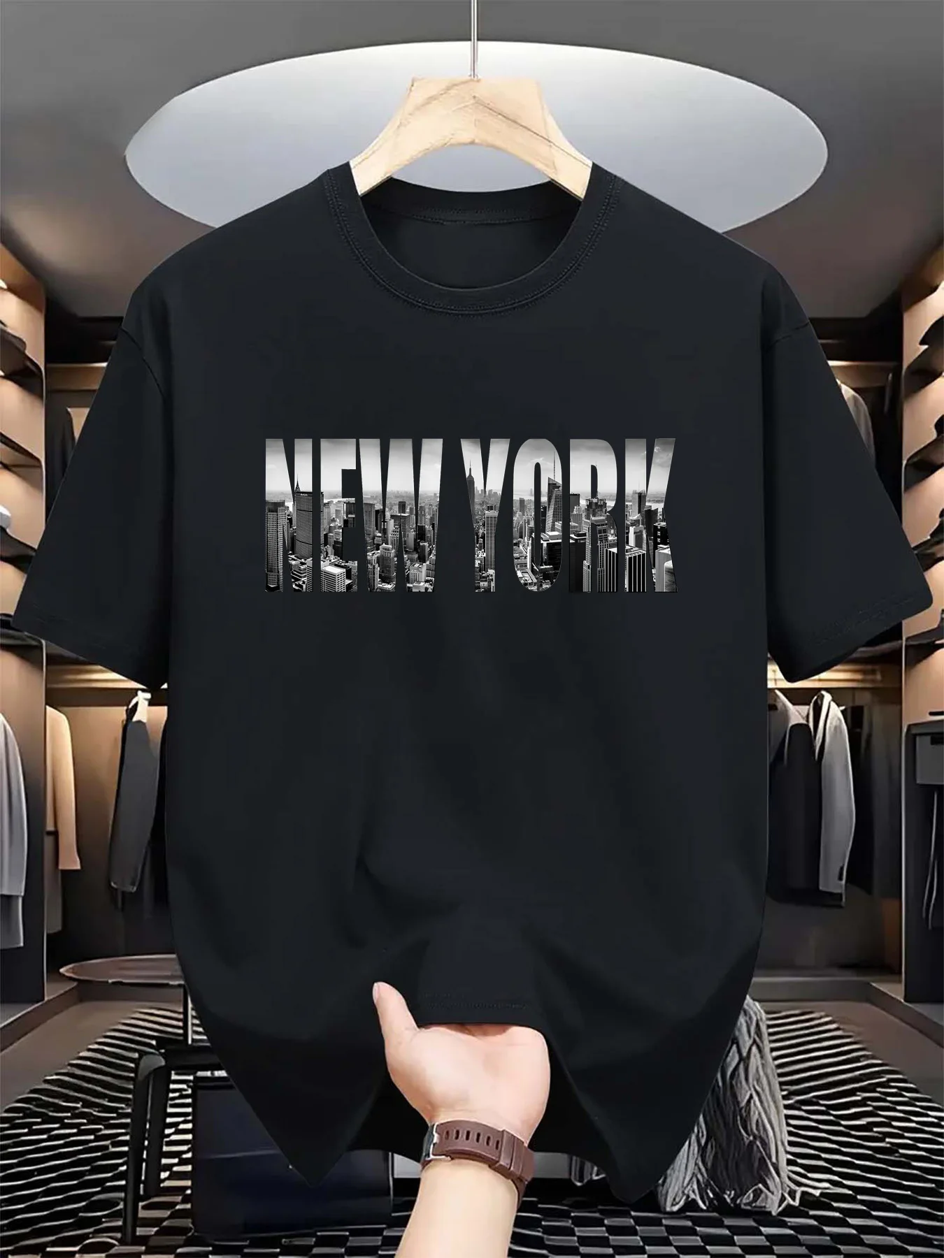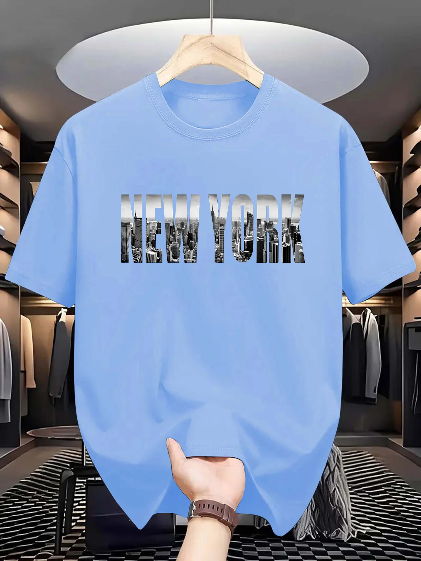 men's 100% pure cotton casual loose plus size New York City printed comfortable round neck short sleeved T-shirt