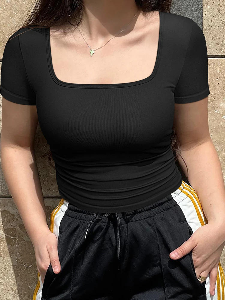 Summer Slim Sexy Women Sports Running Fitness Crop Tops Women's Classic Fashion Shorts Sleeves Crew Neck T-Shirt