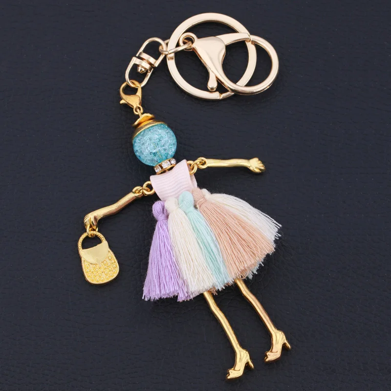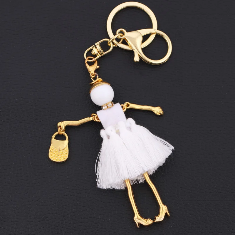 2017 doll alloy tassel keychain for women gold-color crystal key chain ring charm pendant rhinestone keyrings jewelry bag