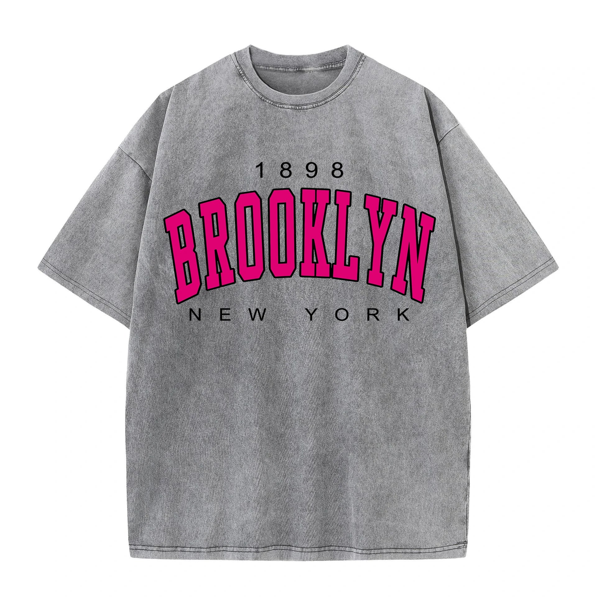 Womans Cotton Washed T-Shirts Fashion Loose O-Neck Short Sleeve Brooklyn New York Printing Tops Female Clothes