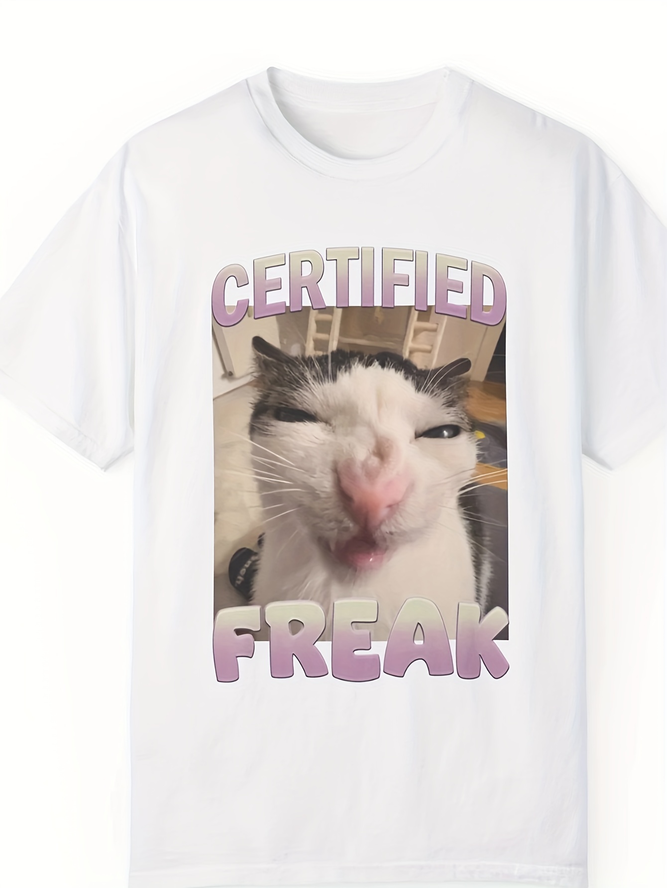 Women's Cat Graphic Tee - Casual Short Sleeve Crew Neck Top