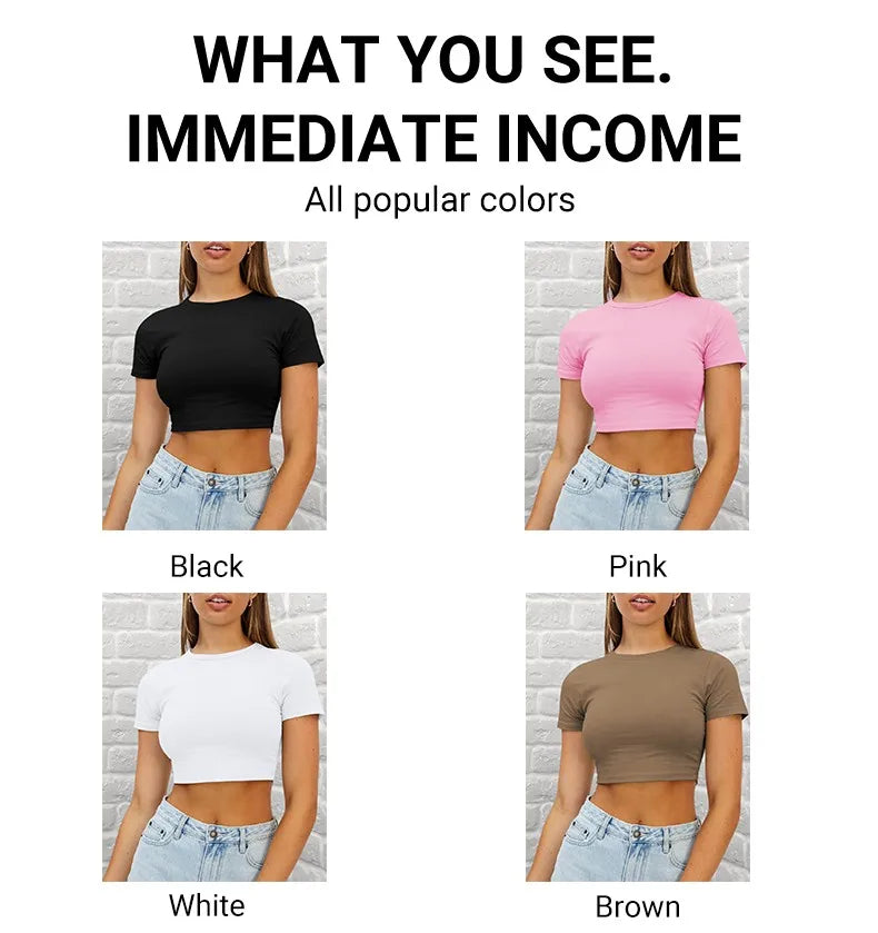 Y2K Woman Solid Crop Tops Short Sleeve High Elastic Viscose T-Shirt Soft O-Neck Sporty Tees Summer Street Fashion Female Clothes